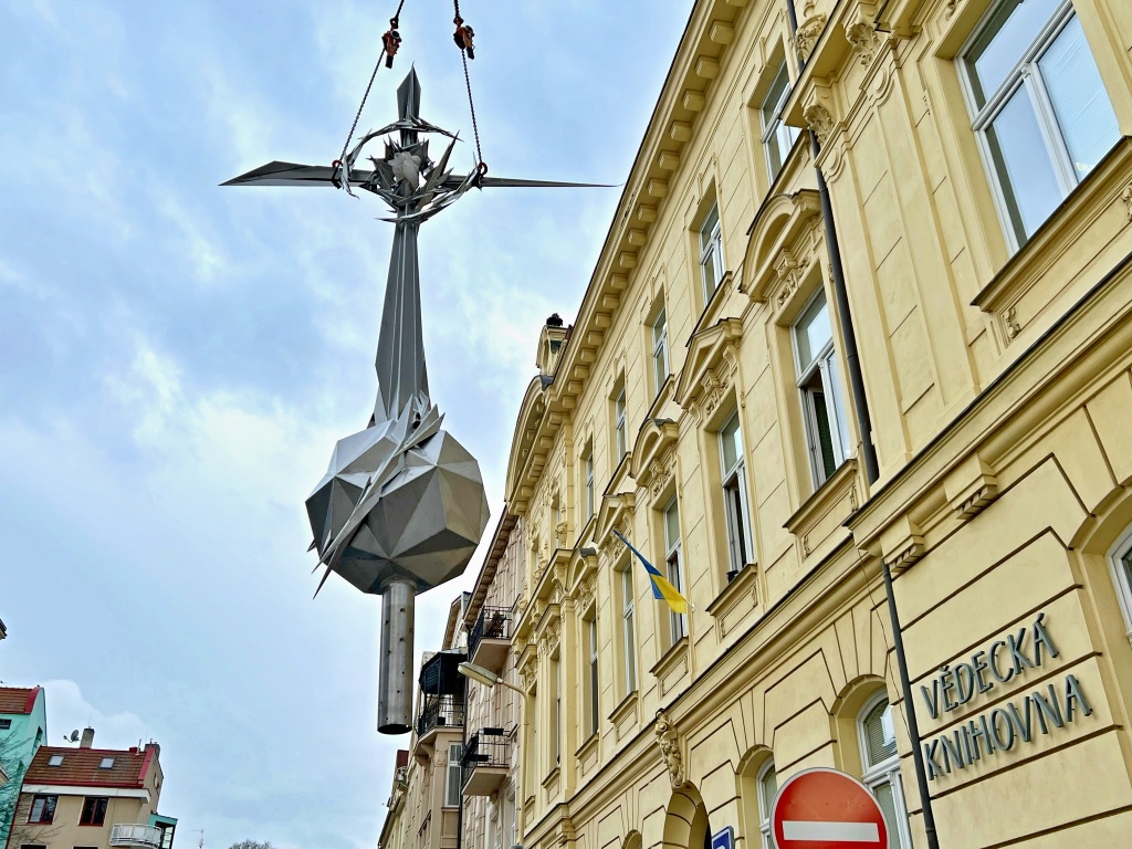 Zbrusu nový kříž ozdobí v nejbližších dnech špičku věže Červeného kostela v Olomouci. Tři a půl metru vysoký křesťanský symbol pochází z dílny olomouckého sochaře Jana Dostála. Instalace, která začala 6. dubna, je součástí rozsáhlé obnovy kostela, který by měl sloužit jako moderní a kulturní prostor Vědecké knihovny Olomouc.