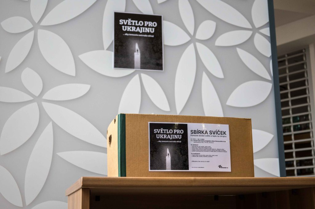 Už rok trvá rusko-ukrajinská válka. I přes to, že se o ní nemluví tak často jako na začátku, vojáci a obyvatelé Ukrajiny pořád zažívají těžké časy, zvláště teď v zimě. V zemi panuje mráz a mnoho oblastí je bez proudu nebo zažívá výrazné výpadky elektřiny i teplé vody. Lidé se nemohou zahřát, uvařit si jídlo nebo si posvítit. Proto vznikla sbírka Světlo pro Ukrajinu, při které dobrovolníci sbírají svíčky, které pošlou válce zkoušené zemi. Dárci je mohou nosit i do sídla Olomouckého kraje.