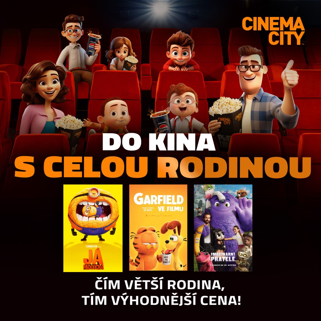 Dobré zprávy se dočkají i početné rodiny plné ratolestí. Výhodnou rodinnou vstupenku, která šla doposud zakoupit pouze na pokladnách, lze nově zakoupit také online. Čím větší rodina se do kina chystá, tím výhodnější cenu dostane. Akce platí na všechny 2D filmy s přístupností doporučené věkové hranice 12 let. Balíček se skládá ze 3, 4 a 5ti vstupenek, které musí obsahovat vždy min. 1x dítě, max. 2x dospělí. Zákazníci si nově mohou v rámci návštěvy kina vychutnat i rodinné menu, které se skládá z velkého popcornu + velkých nachos + velkého drinku.