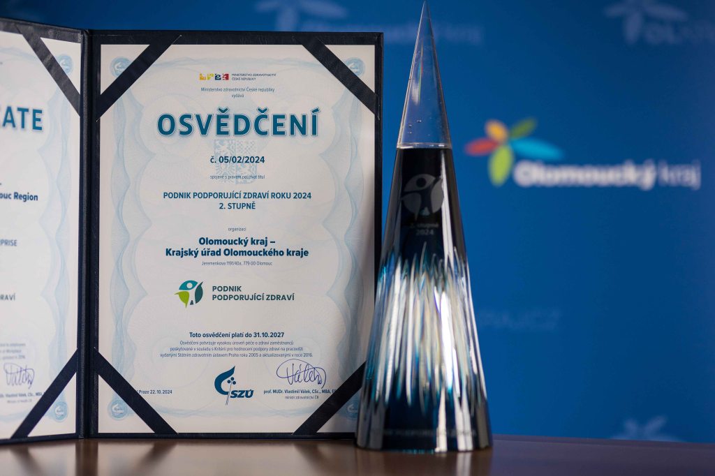 Krajský úřad Olomouckého kraje získal ocenění Podnik podporující zdraví. Toto uznání, které je udělováno organizacím dbajícím na zdraví svých zaměstnanců, získal úřad poprvé, a to za svůj inovativní přístup k péči o zdraví pracovníků. Ocenění je platné tři roky.