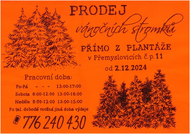 Aktuality, Kostelec na Hané Prodej vánočních stromků přímo z plantáže (Kostelec na Hané, 26.11.2024) Date: 26.11.2024Author: paveldf 0 Komentáře Proběhne od 2.12.2024 v Přemyslovicích č.p. 11. Více informací na plakátu. Sdílej: Klikněte pro sdílení na X (Otevře se v novém okně) X Sdílet na Facebooku (Otevře se v novém okně) Sdílet na Facebooku Líbí Načítání... Související