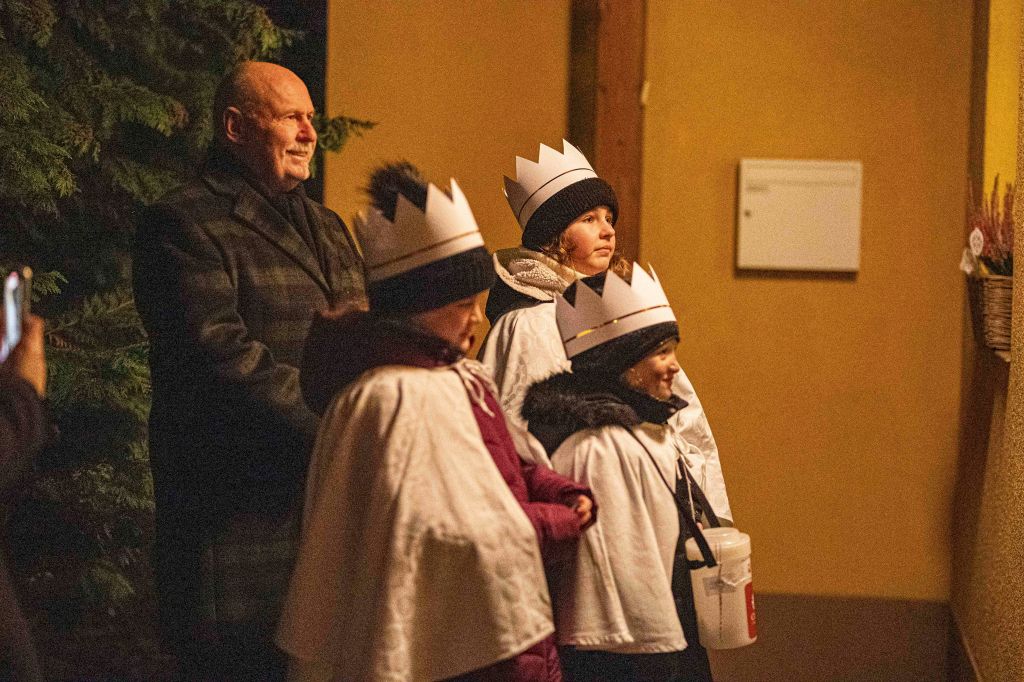 Ve Velkém Týnci zamířil hejtman nejprve do kostela na setkání s koledníky. Pak se čtyři skupinky dětí rozešly do ulic, aby v přestrojení za tři krále zazpívaly lidem koledu a poprosily o dary do dobročinné sbírky. Na část obchůzky mezi sebe přizvaly právě i hejtmana, který se setkal také s místním knězem a starostou obce. Společně mluvili například o investicích do týneckého kostela.