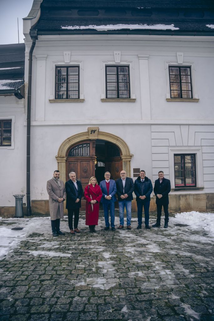 Na závěr dne se vydali na prohlídku Zámku Třemešek v Dolních Studénkách, který slouží jako komunitní centrum. “Tento historický objekt se stal místem setkávání pro místní obyvatele a jako integrovaný projekt zahrnuje sociální bydlení, nájemní bydlení, sociální kavárnu, mateřské centrum a sociální poradenství,” vysvětlil starosta obce Radim Sršeň, který je současně náměstkem ministra pro místní rozvoj a koordinuje popovodňovou pomoc pro regiony.