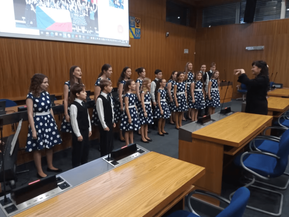 Možná vůbec poprvé se zastupitelský sál stal dějištěm koncertu. V úterý ráno jej naplnila hudba, když radním města Olomouce zazpívaly děti z pěveckého sboru Andromeda pod vedením sbormistryně Hany Vyroubalové, s klavírním doprovodem Lucie Kaucké.