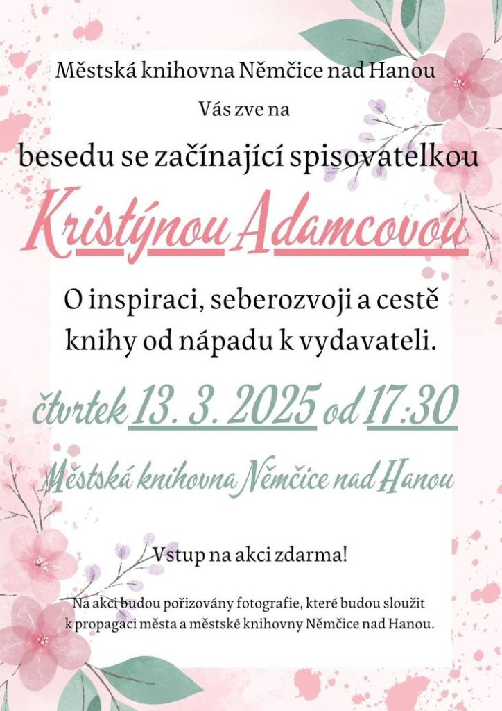 Akce, Němčice nad Hanou Beseda se začínající spisovatelkou Kristýnou Adamcovou (Němčice nad Hanou) – 13.03.2025 Date: 18.2.2025Author: paveldf 0 Komentáře Ilustrační fotografie od John Ray Ebora na Pexels.com Datum konání: 13. 3. 2025 Tuto aktualitu najdete zároveň na www.nemcicenh.cz, kde se můžete podívat i na naše další novinky. Sdílej: Klikněte pro sdílení na X (Otevře se v novém okně) X Sdílet na Facebooku (Otevře se v novém okně) Sdílet na Facebooku Líbí Načítání... Související