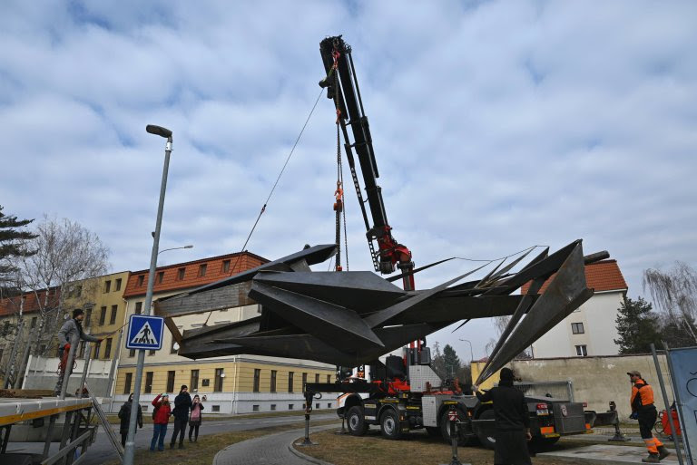 O pár metrů dál, ale zato výš by měli letos zahnízdit hraničtí čápi. Pokud se jim podaří vrátit se z teplých krajin, bude na ně čekat nové sídlo, na kterém se již pilně pracuje. V pondělí 24. února byly do Hranic na místo určení dovezeny první části kovové sochy, aby mohla začít samotná montáž. Spodní část sochy teprve dorazí.