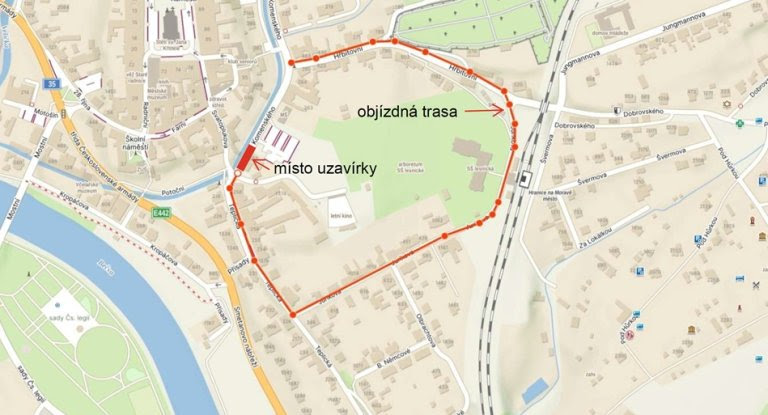 Upozorňujeme, že od 7. do 8. srpna, vždy od 6:00 do 18:00 hodin proběhne částečná uzavírka ulice Komenského u letního kina a také úplná uzavírka přilehlého chodníku. V sobotu 9. srpna opět od 6 do 18 hodin pak bude tato část Komenského ulice uzavřena úplně. Objízdná trasa povede ulicí Hřbitovní a Jurikova. Důvodem uzavírky jsou demoliční práce na č. p. 652 v Komenského ulici. Omlouváme se za způsobené komplikace a děkujeme za pochopení.