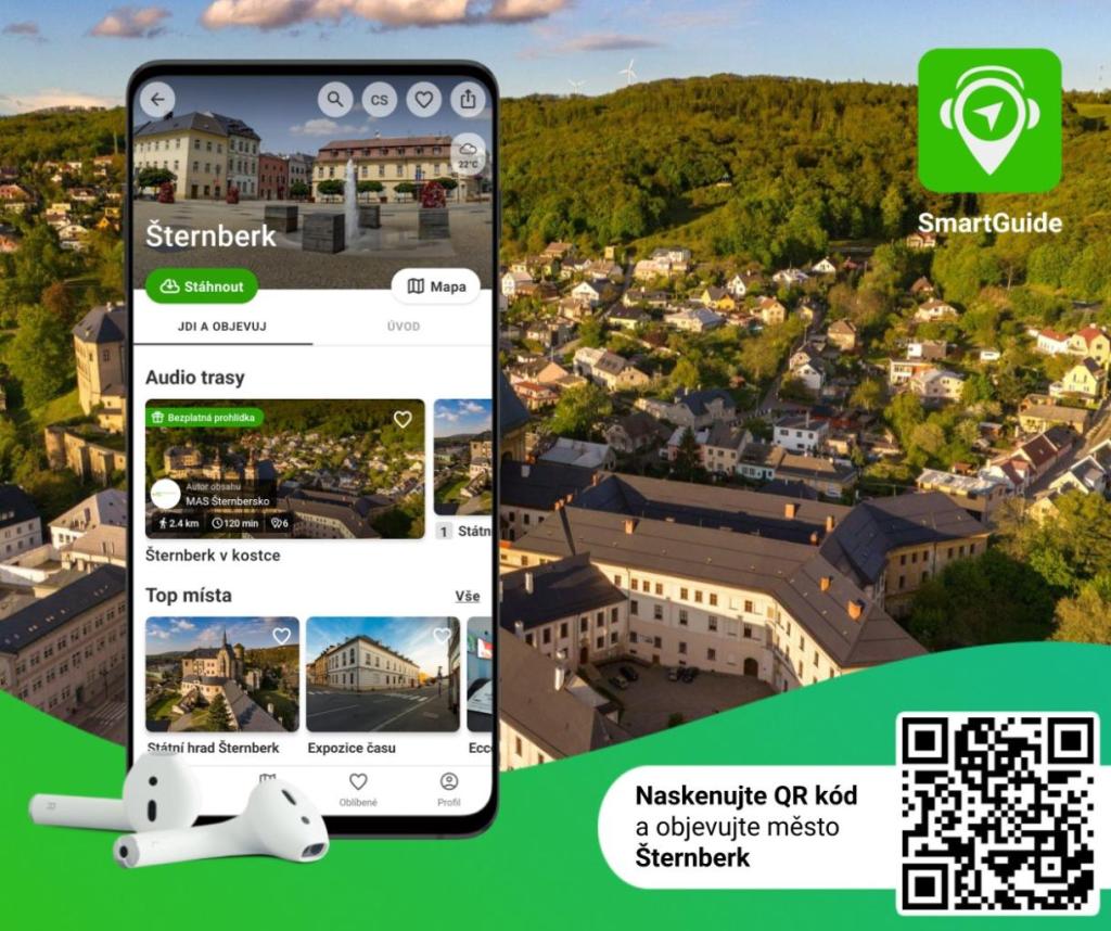 Vydejte se do ulic historického centra Šternberka s mobilní aplikací SmartGuide a nechte si digitálním průvodcem povyprávět zajímavosti o zdejších nejvýznamnějších památkách a dalších zajímavých místech. Prohlídka je zcela bezplatná a dostupná v českém i anglickém jazyce.