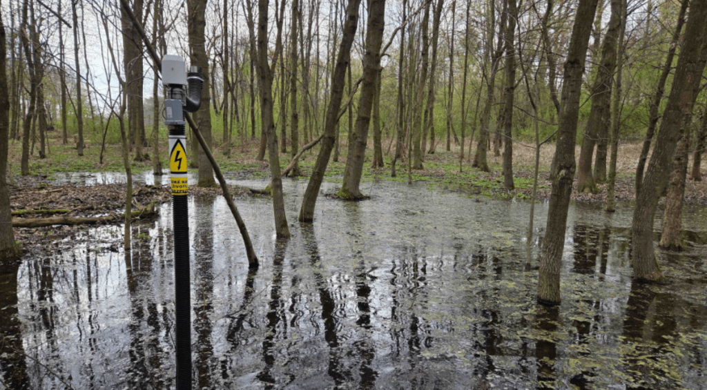 Vytipované lokality jsou dlouhodobě monitorovány. Jsou v nich zapojeny senzory, které nainstaloval Jan Brus z katedry geoinformatiky, zabývající se touto problematikou v Litovelském Pomoraví několik let. Senzory v Černovíře, v Týnečku i v Chomoutově jsou výsledkem úzké spolupráce města a univerzity, kdy samospráva má průběžné a aktuální informace nejen po povodních. Zaznamenávají údaje o teplotě vody, vzduchu a okolní půdy a sledují i míru zaplavení tůní. Právě teplota vody má rozhodující vliv na vývoj larev. „Díky vizualizaci údajů z jednotlivých čidel ve webovém prostředí určujeme rozsah a postup zásahu,“ potvrdil vedoucí odboru životního prostředí Petr Loyka.